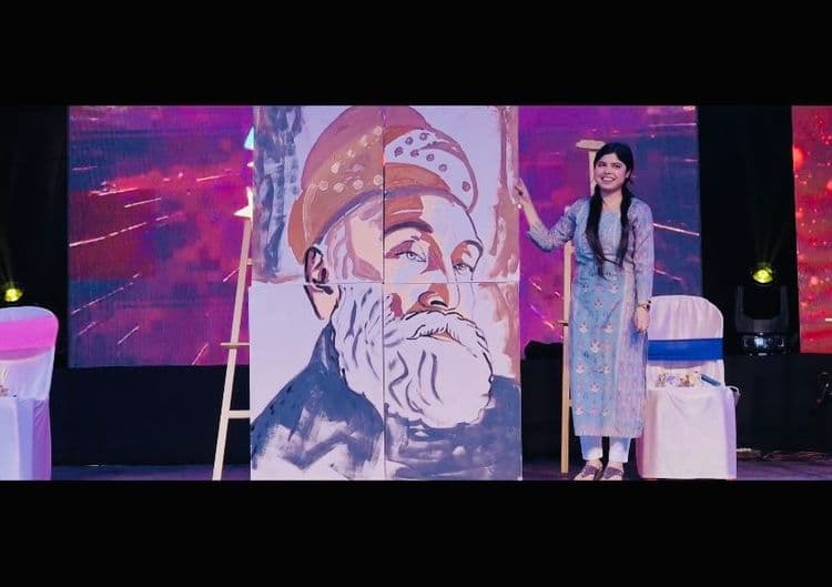 We at Hue Wing celebrate the art of live stage painting, where the talented artist creates stunning works of art in real-time that capture the essence and energy of the event. From concerts and plays to dance performances and beyond, our artist- Nitu Dubey transforms the stage into a canvas and brings the portrait to life in a whole new way. Witness the magic of art as it unfolds before your eyes, with each brushstroke capturing the movement, emotion, and atmosphere of the event. Our live stage paintings are an unforgettable way to experience the energy and excitement of live events, and create an everlasting memory for the crowd. With an eye for detail, colour, and composition, our artist creates a one-of-a-kind masterpiece that celebrates the artistry and creativity of the theme of the event. Our collection features a diverse range of styles and techniques, from bold and expressive brushstrokes to delicate and intricate details. Join us on a journey of discovery and experience the power of live stage painting to blend performance with art.